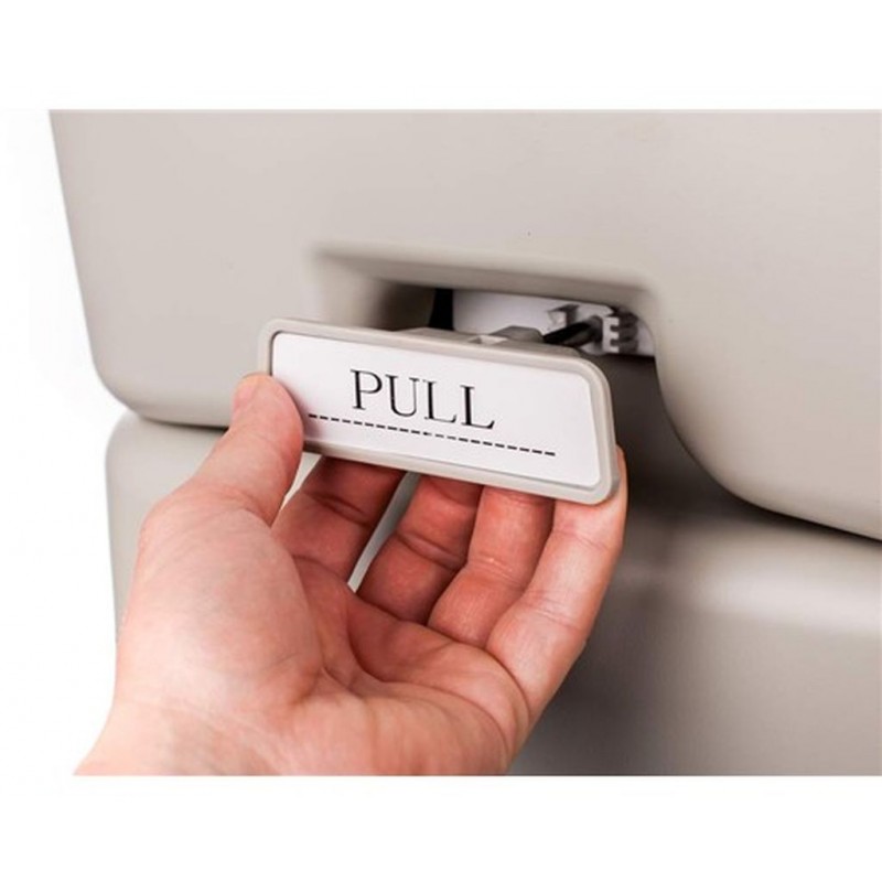 Tragbare Toilette, natürliche Sitzhöhe , Volumen der Abfallbehälter 20L , Frischwassertank 14 l, Gewicht 5,5 kg.Tragbare Toiletten sind die beste Lösung beim Camping, in Wohnwagen oder auf Booten oder für Menschen, die Schwierigkeiten mit der Bewegung haben.