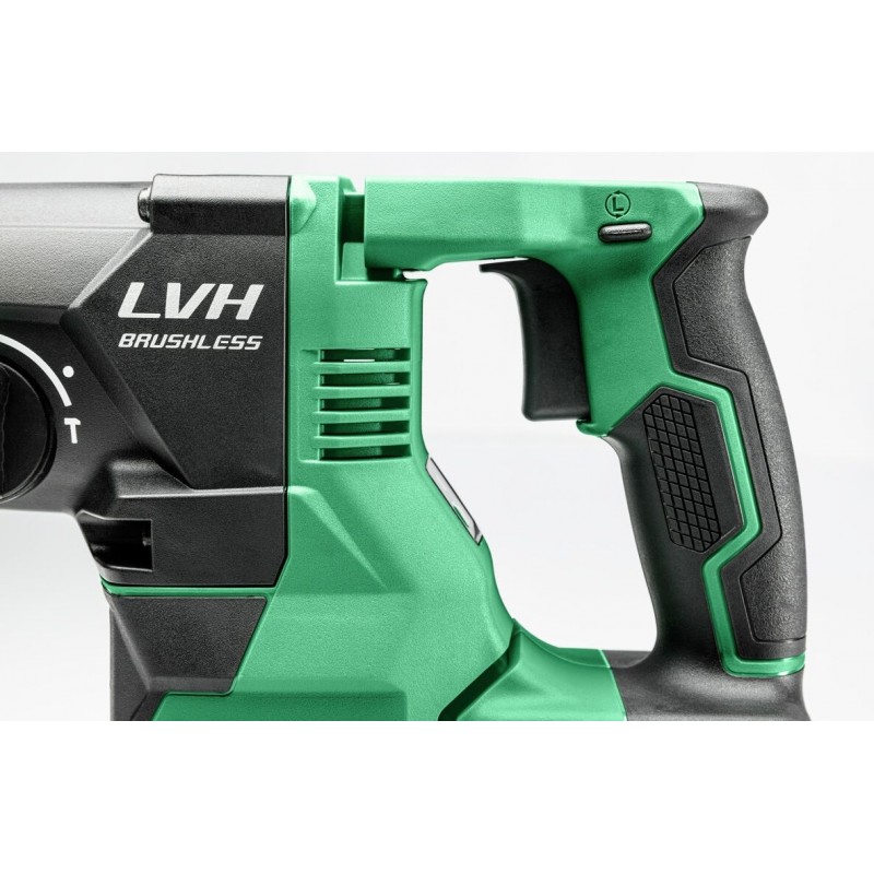 Der HiKOKI Akku-Bohrhammer verfügt über drei Betriebsarten – Bohren, Hammerbohren und Meißeln, wodurch er vielseitig auf Baustellen und bei Renovierungsarbeiten eingesetzt werden kann. Die integrierte Reactive Force Control (RFC) erhöht die Sicherheit, indem sie den Motor automatisch stoppt, wenn das Werkzeug plötzlich blockiert oder überlastet wird. Gleichzeitig sorgt der Low Vibration Handle (LVH) für spürbar reduzierte Vibrationen und damit für komfortables Arbeiten auch bei längeren Einsätzen.