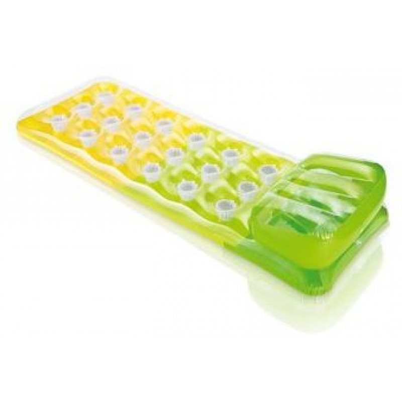 188 x 71 cm große Luftmatratze in kräftigem Farbdesign mit integriertem Kopfkissen. 2 Luftkammern und ein 0,28 mm starkes Vinyl sorgen für Festigkeit und angenehmen Liegekomfort. Verfügbar in 3 verschiedenen Designs.