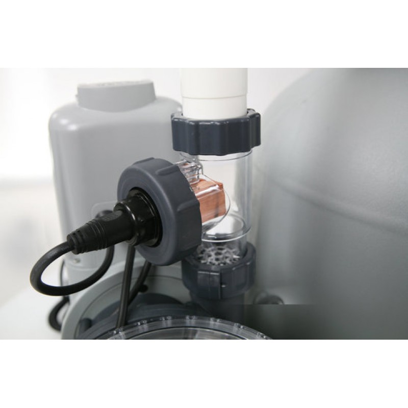 Sandfilter werden schon lange Zeit von Schwimmbadbesitzern als eine der besten Methoden angesehen, um ein klares, glitzerndes Schwimmbadwasser zu erhalten. Der komplett natürliche, günstige Sand leistet exzellente Arbeit beim Herausfiltern von Schmutzpartikeln im Wasser. Dadurch ist der Sandfilter die einfachste Filtermethode am Markt. Salzwassersysteme werden ebenfalls schon lange Zeit erfolgreich angewendet, um ein sauberes und sicheres Schwimmbadwasser zu erhalten, ohne dafür auf Methoden wie z.b. die traditionelle Chlorbehandlung ausweichen zu müssen. INTEX hat nun diese 2 exzellenten Systeme in einem Produkt kombiniert, welches den Besitzern von Aufstellbecken nun ermöglicht, ein kostengünstiges, pflegeleichtes System anzuwenden, um ein sauberes, klares und sicheres Schwimmbadwasser zu erhalten. Beide Systeme werden automatisch durch eine Zeitschaltuhr kontrolliert und garantieren somit eine sorglose und einfache Anwendung.integriertes Salzwasser-Elektrolyse-System