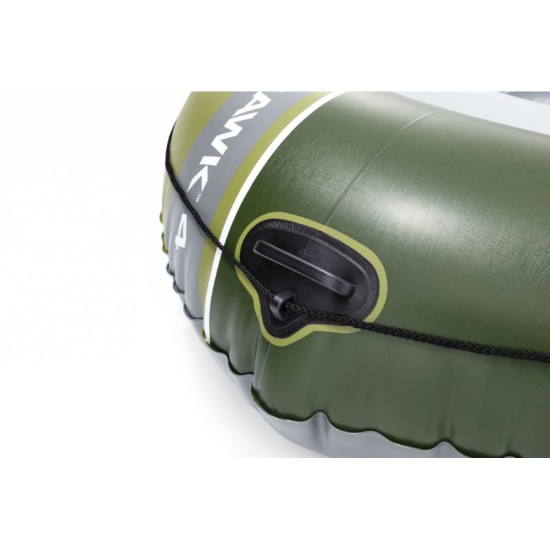 Gefertigt aus hochwertigem SuperStrong PVC, ist das Boot besonders widerstandsfähig gegen Stöße, Abrieb und Sonneneinstrahlung. Die Konstruktion mit 3 Luftkammern erhöht die Sicherheit auf dem Wasser, inklusive zusätzlicher Sicherheitskammer im Hauptkörper. Der aufblasbare Boden mit I-Beam-Technologie sorgt für bessere Stabilität und Komfort beim Sitzen oder Stehen. Praktische Details wie drehbare Ruderdollen, integrierte Angelrutenhalter, umlaufende Halteleine, stabiler Tragegriff am Bug sowie die Möglichkeit zur Motorbefestigung machen das Seahawk 4 zu einem vielseitigen Begleiter für jedes Wasserabenteuer.