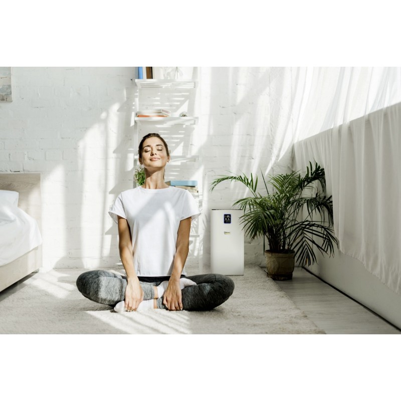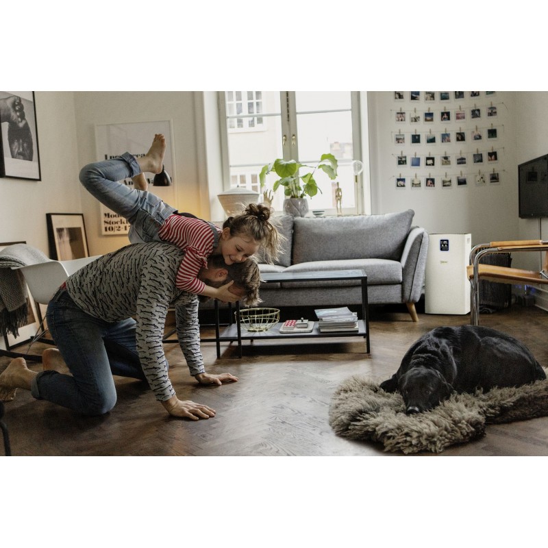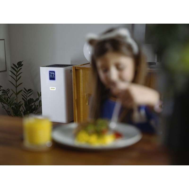 Perfekte Luftreinigung für größere Räume, Wohnzimmer und Arbeitsplätze: Der Luftreiniger AF 50 befreit durch sein mehrlagiges Filtersystem die Innenraumluft von Allergenen, Schadstoffen und Krankheitserregern.Weitere Features sind: die Aktivkohleschüttung, ein Display zur alphanumerischen Anzeige der Luftqualität in PM-2,5-Partikeln in µg/m3, die Anzeige der Luftqualität über einen Farbcode, der Temperatur und der relativen Luftfeuchtigkeit. Darüber hinaus punktet der Luftreiniger mit seiner Timer-Funktion, einer Kindersicherung (Lock-Funktion), einem Nachtmodus und flüsterleisen Betrieb, einer Filtereffizienz von 99,95 % bei 0,3-µm-Partikeln sowie einem hochwertigen Lasersensor für den Automatikmodus. Das heißt: Der Automatikmodus und die Leistungsstufe passen sich automatisch an den Grad der Luftverschmutzung an. Außerdem beträgt die Filterstandzeit rund 1 Jahr, abhängig von Luftverschmutzung und Nutzungsintensität.