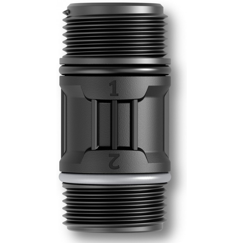 Mit Hilfe des Anschlussadapters lässt sich eine Pumpe mit Innengewinde schnell und sicher mit einem Wasseranschluss mit Innengewinde verbinden – egal ob auf der Saug- oder Druckseite. Geeignet für Anschlussgewinde G1 (33,3 mm) auf G1 (33,3 mm). Auf einer Seite verfügt der Adapter über ein Standard-G1-Gewinde mit axialem Dichtprinzip (Kennzeichnung [2] auf dem Produkt), auf der anderen Seite über ein Standard-G1-Gewinde mit radialem Dichtprinzip (Kennzeichnung [1] auf dem Produkt). Das radiale PerfectConnect-Dichtprinzip der BP-Zubehöre erlaubt eine kinderleichte Montage, dichtet besonders zuverlässig ab und garantiert so einen störungsfreien Betrieb der Pumpen. So können zum einen sowohl Zubehöre anderer Anbieter als auch ältere Kärcher Zubehöre (Kennzeichnung [2]) an die Kärcher Pumpen mit radialem Dichtkonzept (Kennzeichnung [1]) angeschlossen werden. Zum anderen können radial dichtende Zubehöre der Kärcher PerfectConnect-Reihe (Kennzeichnung [1]) an alle herkömmlich axial dichtenden Pumpen (Kennzeichnung [2]) angeschlossen werden.