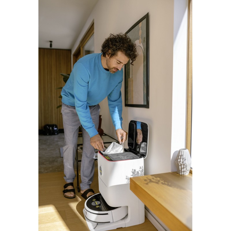 Kärcher Filterbeutel sind hochwertige Vliesbeutel (Fleece), die für die multifunktionale Station RVF 7 Comfort und die Absaugstation RCV 5 vorgesehen sind. Sie gewährleisten hygienisches und einfaches Entfernen von Staub und Schmutz und erhalten gleichzeitig ständig hohe Saugleistung für eine maximal effiziente und autonome Arbeit des Saugroboters.