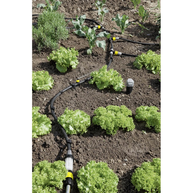 Der Partikelfilter schützt das Kärcher Rain System® vor Schmutzteilchen. Der Filter wird am Ende des Zuleitungsschlauchs im Übergang zum Kärcher Rain System® angebracht. Der Filtereinsatz kann jederzeit mühelos entnommen und gereinigt werden. Auf der Eingangsseite befindet sich ein Hahnanschluß, der mit allen bekannten Klicksystemen kompatibel ist. Die Ausgangsseite bildet den Anschluss für den Kärcher Rain System® Schlauch oder den Tropfschlauch. Die Schläuche werden einfach direkt aufgesteckt und mit Hilfe der Überwurfmutter werkzeuglos fixiert. Das effiziente Bewässerungssystem Kärcher Rain System® vereint die Vorteile von Micro-Dripping und herkömmlicher Bewässerung. Das System arbeitet mit bis zu 4 bar Druck, lässt sich individuell an fast jeden Gartentyp anpassen und arbeitet perfekt mit dem SensoTimer für eine bedarfsorientierte Bewässerungssteuerung zusammen.