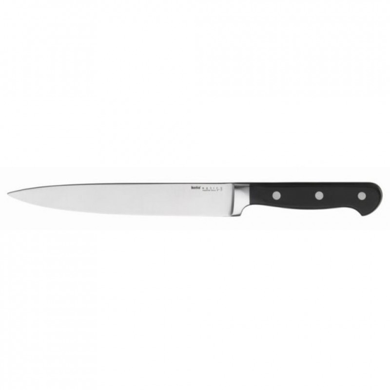 Ob Fleisch, Braten oder Schinken: Das Fleischmesser BASIC mit langer, schmaler Klinge eignet sich bestens zum Schneiden jeder Art von Fleisch.Messer aus Edelstahl, spülmaschinenfest, mit POM-Griff, Klingenlänge 20 cm/8", Messerlänge 33 cm.