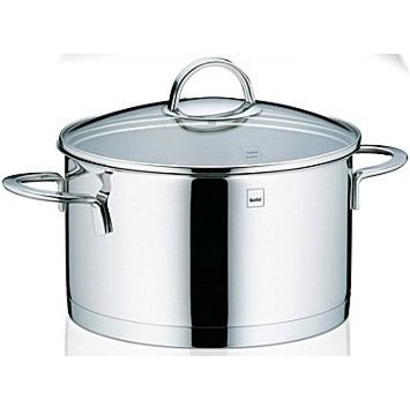 Der Fleischtopf zur schonenden Zubereitung von Fleisch- und Gemüsegerichten ist aus 18/10 Edelstahl und hat einen Glasdeckel mit Edelstahlgriff.
