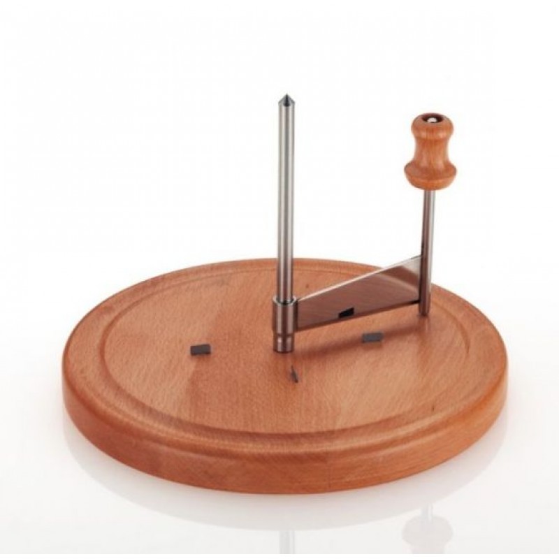 Käsehobel aus Edelstahl, Unterteller aus Buchenholz, Durchmesser 2 cm, Höhe 2 cm