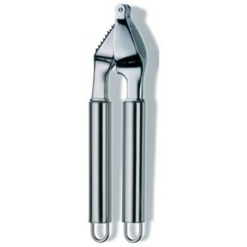 Küchenhelfer aus der Serie RONDO - Knoblauchpresse aus EdelstahlMit der Knoblauchpresse RONDO können Sie ganz leicht den Knoblauch zerdrücken. So sparen Sie sich das mühsame Knoblauch zerdrücken per Hand oder mit einem Fleischklopfer. Das besondere an dieser Knoblauchpresse ist die genoppte Rückseite. Mit dieser ist es möglich die Löcher der Knoblauchpresse von Überresten schnell und leicht zu befreien.