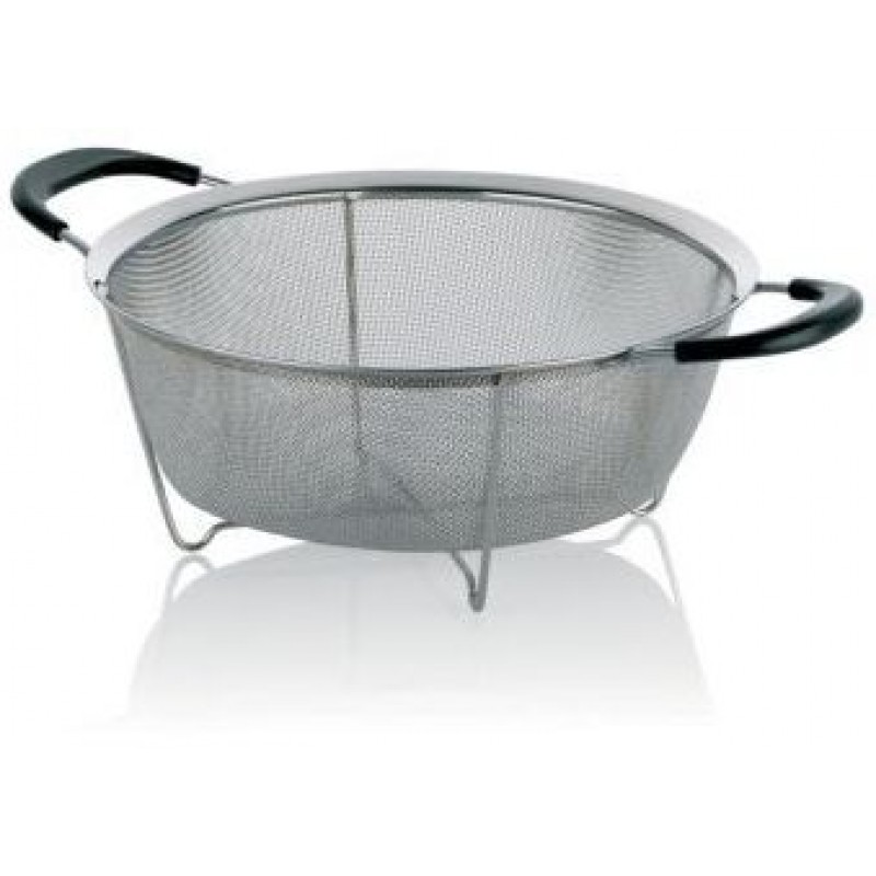 Das Küchensieb Colino zeichnet sich vor allem durch die 2 praktischen Tragegriffe aus. Durch die Gummierung dieser Griffe kann das Sieb auch nur schwer aus der Hand rutschen. Aus der Serie Colino gibt es zudem noch Küchensiebe in verschiedenen Größen mit nur einem Griff (in grün und schwarz) und ein sehr praktsiches Sieb für das Spülbecken der Küche. Das Sieb ist aus Edelstahl 18/10.