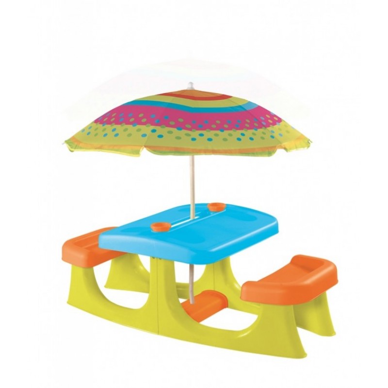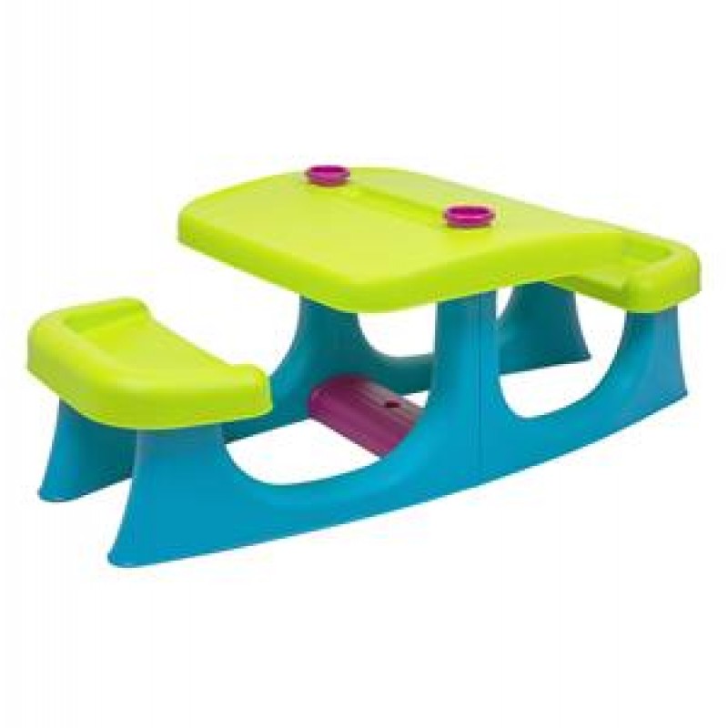 Der Patio Center Picknick-Tisch gibt Kindern das Erfolgserlebnis ihre eigene Spielwelt selbst zu erschaffen und mit Freunden und Familie in diese einzutauchen. Die farbfrohe Picknickbank bietet Ihren Kleinsten eine tolle und robuste Sitzgelegenheit zum Spielen, Essen, Quatschen usw. Die Hauptproduktinhalte sind Rollenspiele und Nachahmung der Erwachsenen. Sie besteht aus zwei fest integrierten Bänken und einem Tisch. Inbegriffen ist auch eine Malltabelle Das Ganze ist mit einer unterstützenden Fußbank verbunden. In der Mitte des Tisches befindet sich ein Staufach für Malkreiden und Farbstifte.Hochwertige Qualität und solide Verarbeitung garantiert jahrelange Spielfreude!