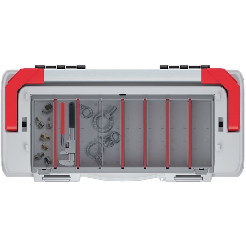 • Großer Organizer mit Trennwänden und einem robusten Deckel aus Polycarbonat.