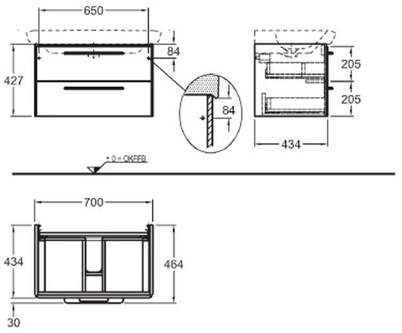 - Pro odeslání do Česka navštivte KOLO Life! skříňka pod umyvadlo, závěsná, 70 cm, 2 zásuvky, lesklá šedá 89468000
