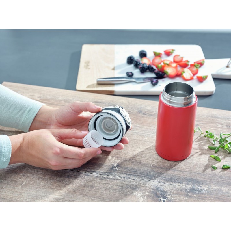 - Abnehmbares Filterelement gewährleistet angenehmes Trinken, auch wenn sich in diesem Obst oder Kräuter befinden