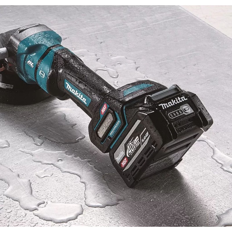 Der 40 V max Akku-Winkelschleifer bietet maximale Leistung für anspruchsvolle Trenn- und Schrupparbeiten und erreicht mit bis zu 2.300 Watt Ausgangsleistung ein Leistungsniveau vergleichbar mit kabelgebundenen Geräten. Dank der AFT-Technologie wird der Rückschlag bei blockierender Scheibe deutlich reduziert, während das XPT-Schutzsystem zuverlässigen Schutz vor Staub und Spritzwasser bietet.