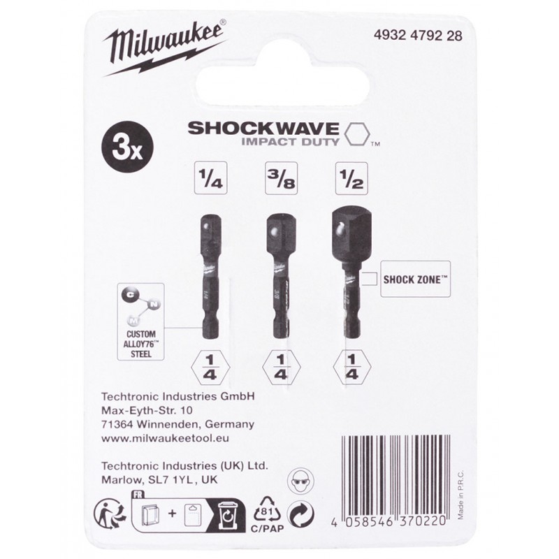 - Aby wysłać do Polski odwiedź Milwaukee Zestaw adapterów do nasadek udarowych Shockwave 3 szt.1/4"-3/8"- 1/2" 4932479228