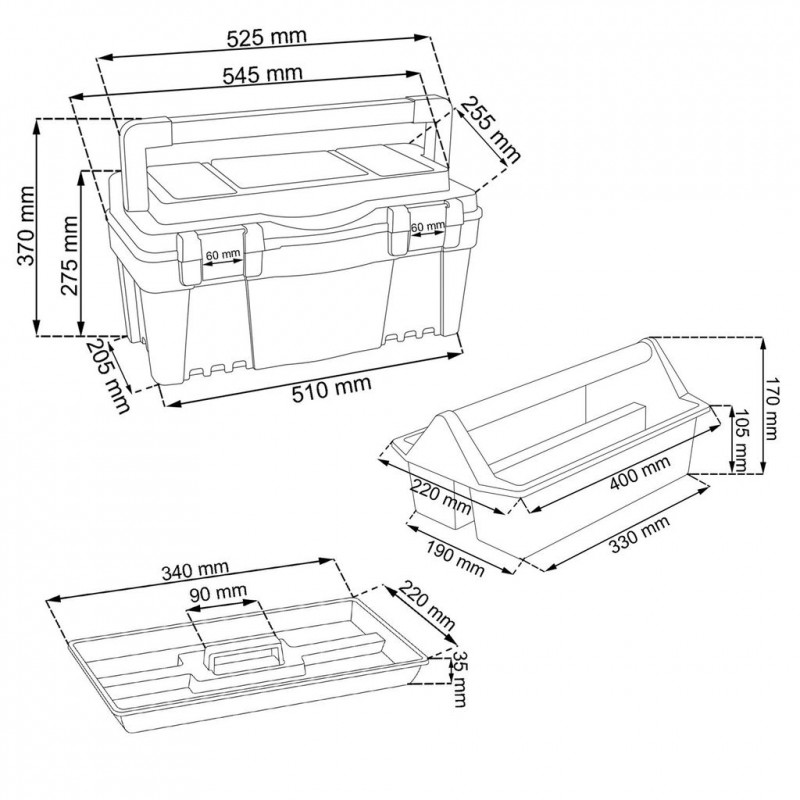 Eine starke und solide Werkzeugkiste geeignet für verschiedene Verwendungen. Der Deckel wurde bei der Firebird Serie in modischer Orange Farbe designet. In dieser fortgeschrittene Kiste gibt es zwei herausnehmbare Trageeinsätze: ein großförmiger Werkzeugträger (wie bei jedem Werkzeugkasten) und eine zusätzliche starke Werkzeugbox – mit offenen Ablagen und Aluminiumgriff. Der Werkzeugkasten wurde mit zwei verstärkten Aluminium Klips- Verschlüssen ausgestattet. Ideale Lösung für Menschen, die einen geräumigen und festen Werkzeugkasten suchen. Es handelt sich um ein Produkt mit höchsten Qualitätsansprüchen.Technische Daten: