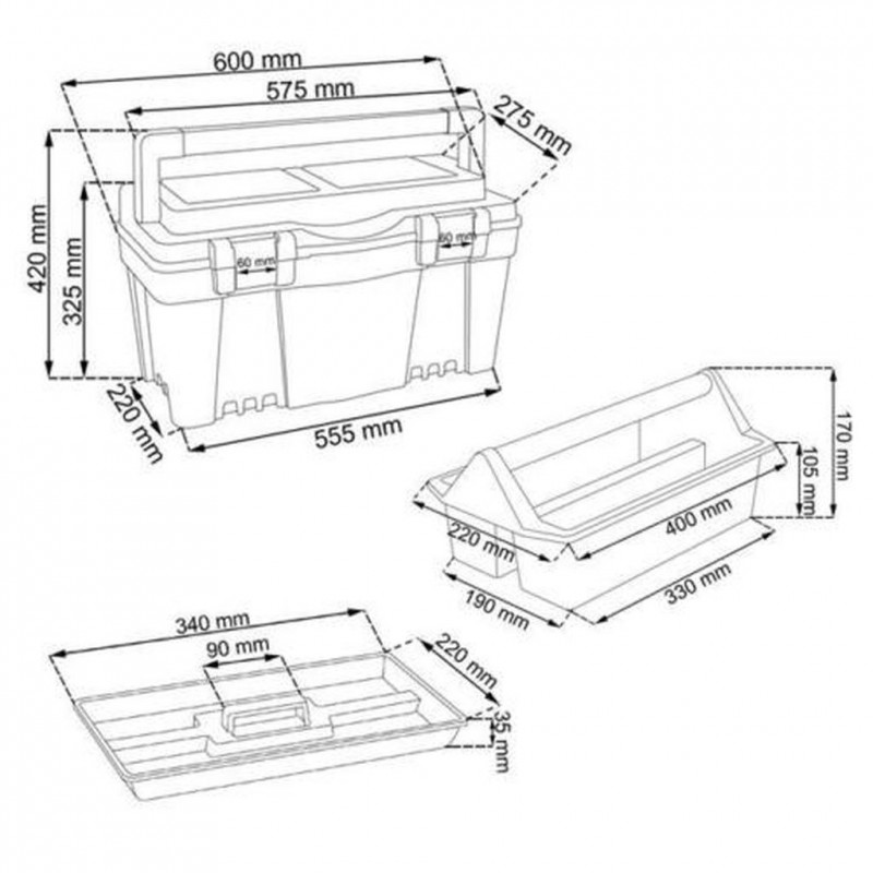 Eine starke und solide Werkzeugkiste geeignet für verschiedene Verwendungen. Der Deckel wurde bei der Firebird Serie in modischer Orange Farbe designet. In dieser fortgeschrittene Kiste gibt es zwei herausnehmbare Trageeinsätze: ein großförmiger Werkzeugträger (wie bei jedem Werkzeugkasten) und eine zusätzliche starke Werkzeugbox – mit offenen Ablagen und Aluminiumgriff. Der Werkzeugkasten wurde mit zwei verstärkten Aluminium Klips- Verschlüssen ausgestattet. Ideale Lösung für Menschen, die einen geräumigen und festen Werkzeugkasten suchen. Es handelt sich um ein Produkt mit höchsten Qualitätsansprüchen.Technische Daten: