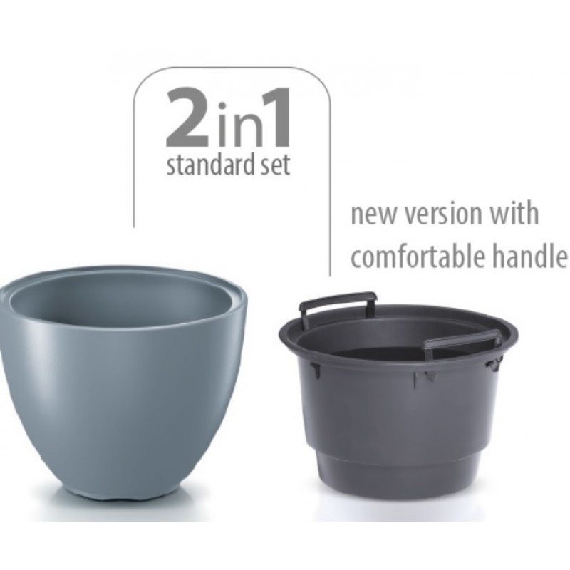 Blumentöpfe HEOS sind aus leichtem Kunststoff hergestellt und sind Wetter- und UV-beständig.Blumentöpf hat einen inneren Einsatz. Seine Vorteil ist die Fähigkeit, die Menge des Bodens in einen Topf zu reduzieren. Dank dem mitgelieferten Pflanzeinsatz ist das Bepflanzen sehr einfach.
