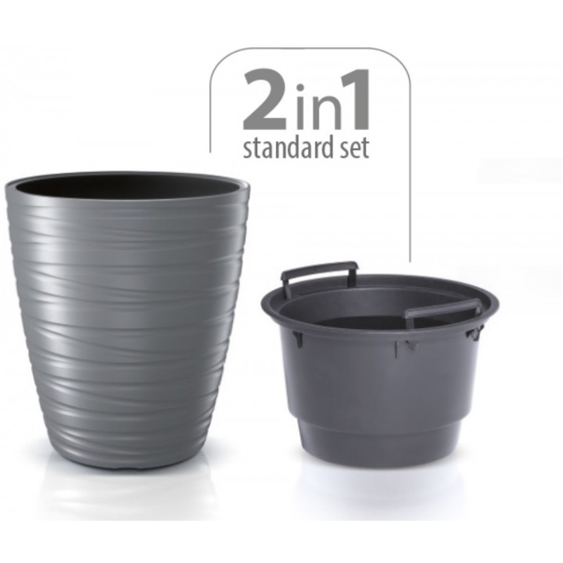 Blumentöpf hat einen inneren Einsatz. Seine Vorteil ist die Fähigkeit, die Menge des Bodens in einen Topf zu reduzieren. Dank dem mitgelieferten Pflanzeinsatz ist das Bepflanzen sehr einfach.