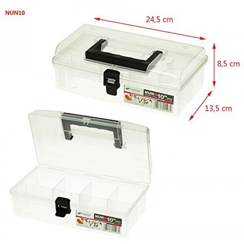 Sortimentskasten mit 5 FächerTransparente, stabile Kunststoffbox aus PP zur Aufbewahrung von kleinen Bauelementen in Werkstatt und Beruf, Nähutensilien oder verstaubare Kleinteile im Haushalt oder zur Aufbewahrung als Vorsortierung von Briefmarken oder Münzen in Ihrem ausgeübten Hobby. Organizer aus unzerbrechlichem Kunststoff mit eingelassenen Fächern zur Aufbewahrung. Ein idealer Helfer für Hobby und Beruf. Sie halten Ihre kleinen Helfer immer griffbereit und sortiert. In Schränken, Ragelen und Schubladen erhalten Sie Ordnung und haben alles immer griffbereit. Mit einem Griff können Sie mit unseren Sortimentskästen Kleinteile zum Gebrauch auch an anderen Standorten nutzen.
