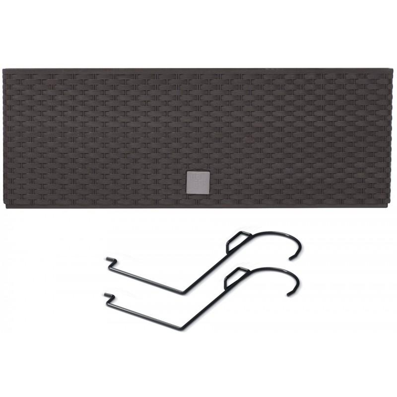 Der rechteckige Blumenkasten aus der RATO CASE W Kollektion mit einem optischen Rattan-Design eignet sich perfekt für alle Arten von Pflanzen und Blumen. Ideal für Garten, Tarassen, Balkone, Wintergarten, Restaurants und Gasthäuser. Der Kasten wurde aus widerstandsfähigem Kunststoff hergestellt und ist UV- und witterungsbeständnig. Dank dem Innenkübel ist die Bepflanzung kinderleicht. Das Set beinhaltet auch Metallaufhängung für eine sichere Befestigung an z.B. Balkonen, Brüstungen, Geländer.