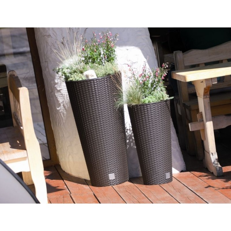 In moderner Rattan-Optik präsentiert dieser Blumenkübel Ihre Pflanzen. Dank der Fertigung aus hochwertigem Kunststoff ist dieser Pflanzenbehälter sowohl für den Innen- als auch für den Außenbereich perfekt geeignet. Ob im Wintergarten, in der Eingangshalle oder vor der Haustür – dieser Pflanzenkübel macht überall eine gute Figur!