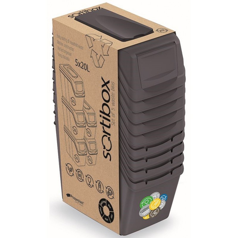 - Aby wysłać do Polski odwiedź Prosperplast SORTIBOX Zestaw Koszy Pojemników do Segregacji Śmieci 5x20l,antracyt ISWB20S5