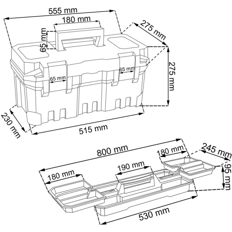 Ideal für Werkzeuge und Zubehör. Der Helfer in Werkstatt und Beruf. Der Koffer ist aus robustem schlag- und stoßfestem Kunststoff PP und hat einen ergonomisch versenkbaren Griff. Der herausnehmbare Werkzeugträger. Die ästhetischen Formen, sowie die Farbgebung verursacht, dass dieser Werkzeugkoffer die vielfältige Anwendung findet.Der Werkzeugkoffer hat die sicheren Clip-Verschlüsse sowie den Platz auf das kleine Vorhängeschloss (nicht im Lieferumfang enthalten).