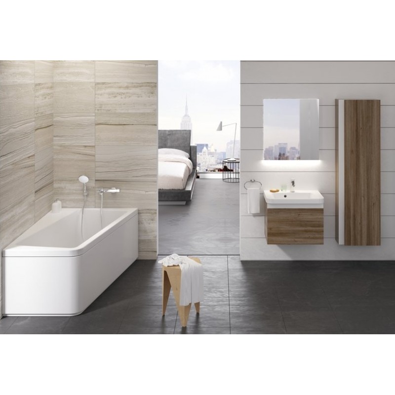 Die besten Dinge sind in der Regel die einfachsten. Eine leichte Drehung um nur 10° genügt zur Errei-chung eines maximalen Komforts beim Waschen. Das gesamte Äußere sowie die praktischen Funkti-onen betont auch der in gleichem Winkel abgeschrägte Schrank.