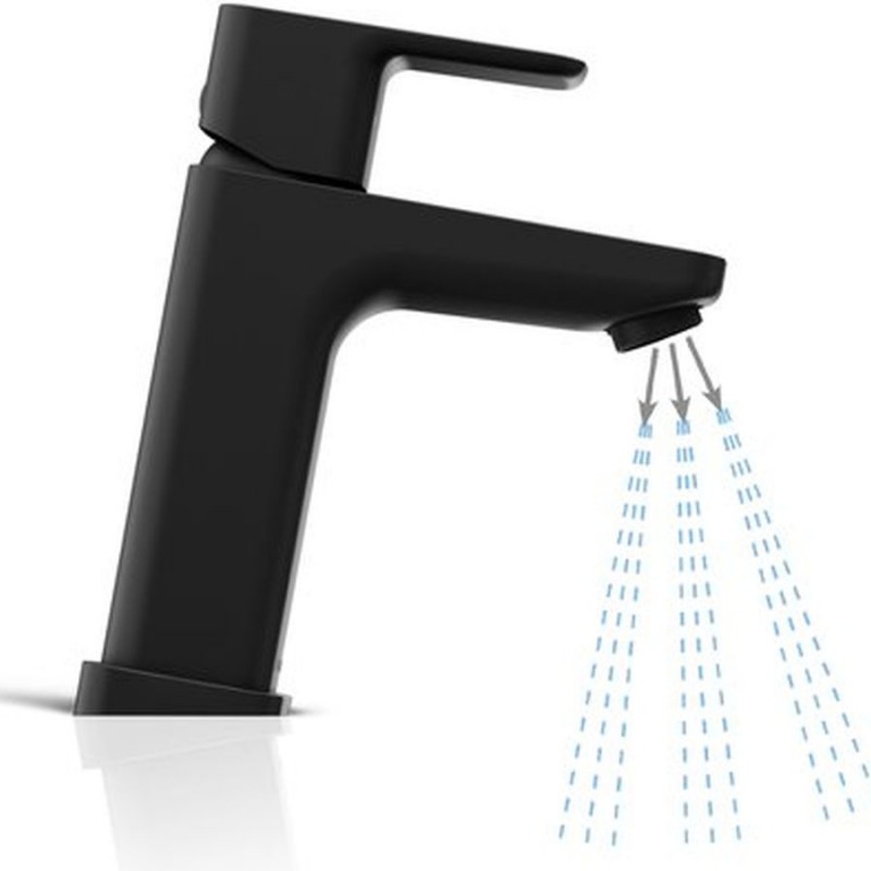 Kommt Ihnen mit der praktischen Neigung in Richtung Hände und zur Waschbecken-Innenseite entgegen. Somit ist die schwieriger zugängliche Stelle zwischen der Batterie und der Wand leichter nutzbar und einfacher zu reinigen. Armaturen mit mattschwarzer Oberfläche fallen sofort ins Auge und verleihen Ihrem Bad einen besonderen Hauch von Luxus.