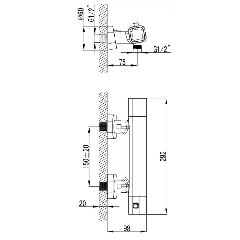 - Pro odeslání do Česka navštivte RAVAK 10° TD 033.00/150 Termostatická sprchová nástěnná baterie X070102