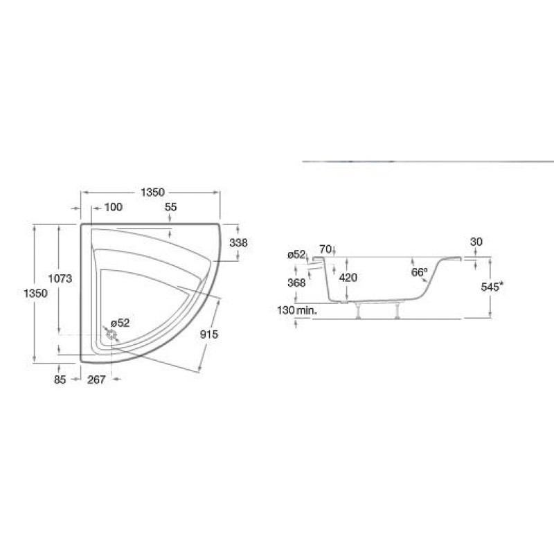 Roca Easy Eckbadewanne Angular 135 x 135 cm, 7248189000