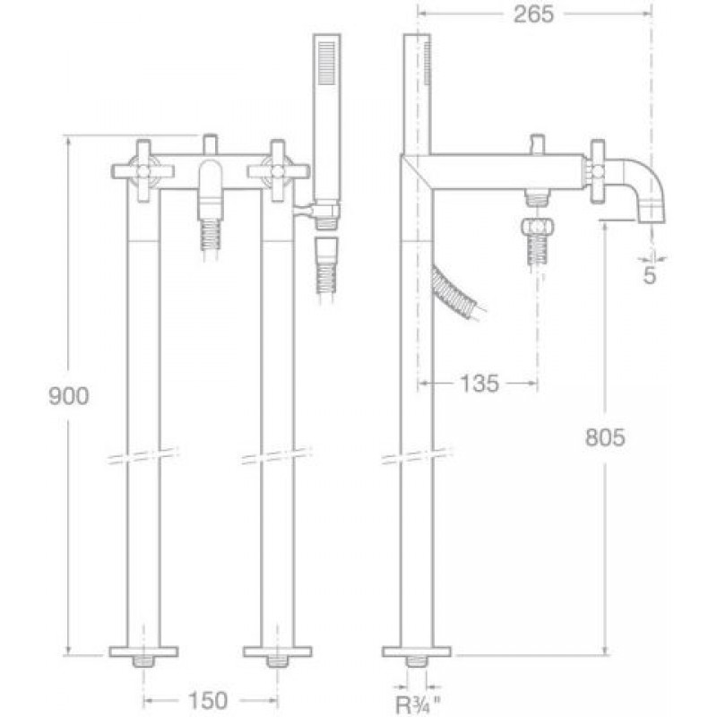 Roca Loft Zweihand-Wannenarmatur, chrom 75A2743C00