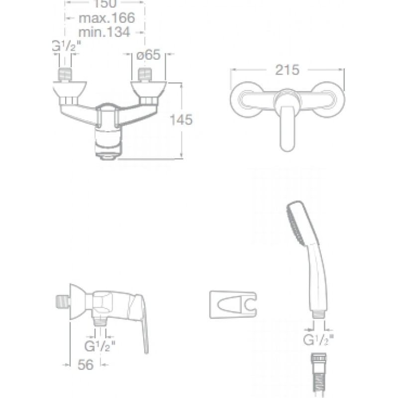 - Mittenabstand: 150 mm