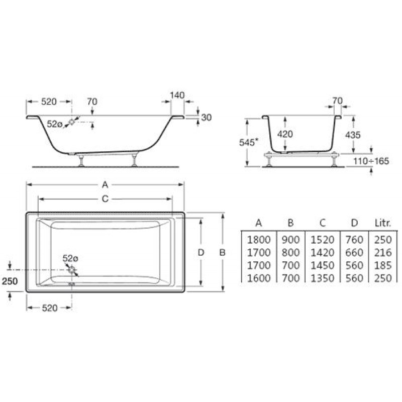 - Pro odeslání do Česka navštivte Roca Vythos akrylátová vana 180 x 90 cm, 250l, pro dvě osoby, 7247592000