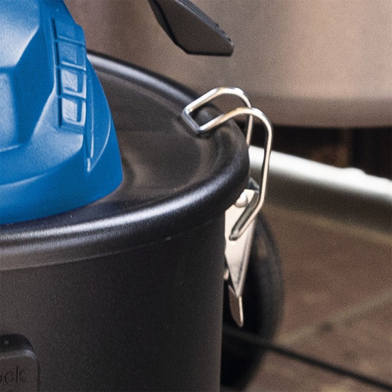 Der robuste 20-Liter-Sammelbehälter ermöglicht längeres Arbeiten ohne häufiges Entleeren. Dies ist zusätzlich sehr einfach dank der Schnellspannverschlüsse. Der große Arbeitsradius wird durch einen nicht brennbaren Saugschlauch mit 150 cm Länge gewährleistet, der auch für die Arbeit mit Asche geeignet ist. Der praktische Zubehörhalter hilft, Ordnung zu halten und alles griffbereit zu haben.