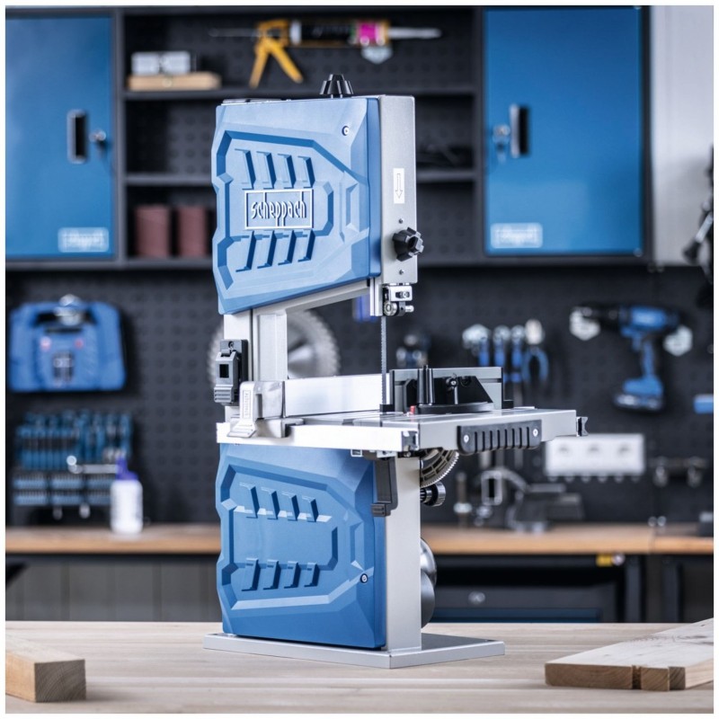 - Inklusive Sägeband, Parallelanschlag, Querschneidlehre und Schiebestock