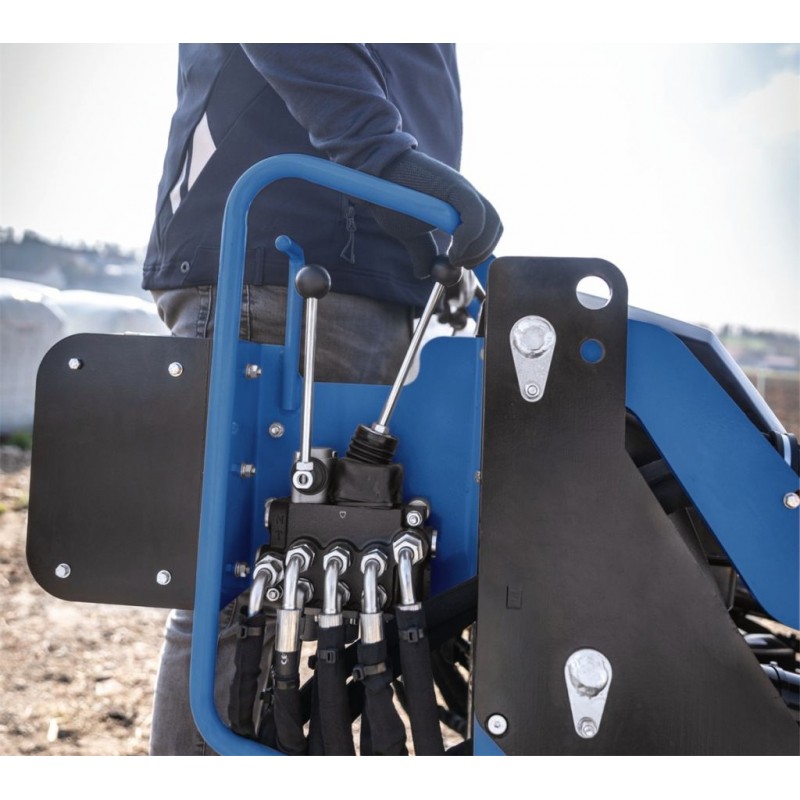 Den Arbeitskomfort erhöhen eine ergonomische Plattform mit Sicherheitsschalter, Seitenbügel sowie eine leistungsstarke LED-Beleuchtung für Arbeiten in der Dämmerung. Die kompakte Maschinenbreite von 740 mm ermöglicht die Durchfahrt auch durch enge Bereiche, in denen andere Maschinen nicht passen. Mit einer Geschwindigkeit von 2,3 km/h vorwärts und rückwärts ist ein reibungsloser Arbeitsablauf gewährleistet.