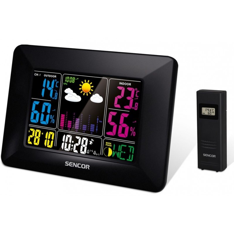 SENCOR SWS 4660 Wetterstation mit schnurlosem Abgriff 35052020- Wettervorhersagesymbol (sonnig, teilweise bewölkt, bewölkt, Regen, Sturm, Schnee)