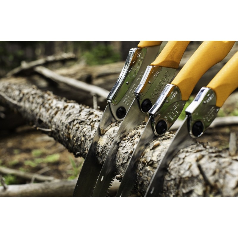 Die beliebte Gomboy Klappsäge ist nun auch in einer Version mit gebogener Klinge erhältlich – die Gomboy Curve. Einzigartig ist, dass die geraden und gebogenen Sägeblätter untereinander sowie zwischen den Gomboy Modellen austauschbar sind.