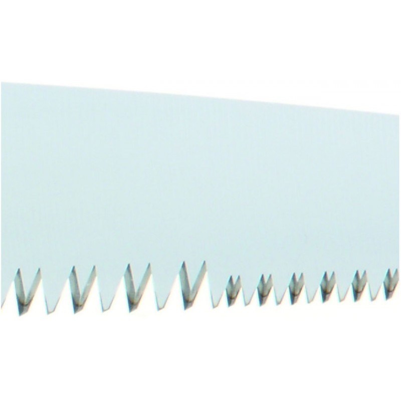 Das gerade Blatt sorgt für einen sehr präzisen Sägeschnitt und ermöglicht eine einfache Handhabung in engen Bereichen sowie nah am Boden. Da das Blatt bis in den Griff verläuft, wirkt die Säge besonders stabil und ausgewogen. Die messerscharfen Zähne hinterlassen eine glatte Schnittfläche, wodurch der Baum schneller verheilen kann.