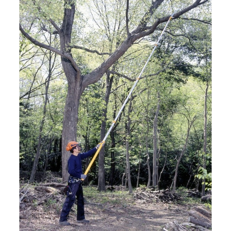 Mit der Hayate erreichen Sie Orte, die man kaum mit einer Leiter erreichen kann. Stehend am Boden schneiden Sie selbst dickste Äste in wenigen Zügen. Die Geschwindigkeit der Hayate kann mit der einer Kettensäge verglichen werden. Das Sägeblatt hat so viel Kraft, dass Sägen kaum körperliche Anstrengung erfordert. Lassen Sie einfach das Gewicht der Säge die Arbeit machen!