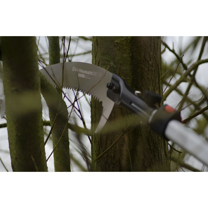 Beschneiden aus der Ferne erfordert eine zuverlässige und vielseitige Säge. Das 390 mm lange, gebogene Sägeblatt der Hayauchi ist mit Silky’s einzigartigen 4-RETSUME Zähnen ausgestattet. Diese Zähne verursachen einen großen Holzverlust, so dass Sie sehr schnell durch die dicksten Äste sägen können und geben Ihnen die Flexibilität, um in alle Richtungen in Bezug auf die Holzmaserung zu sägen. Ideal für größere Aufträge! Das Sägeblatt ist in zwei verschiedenen Winkeln für Hoch- und Tiefschneiden einstellbar.