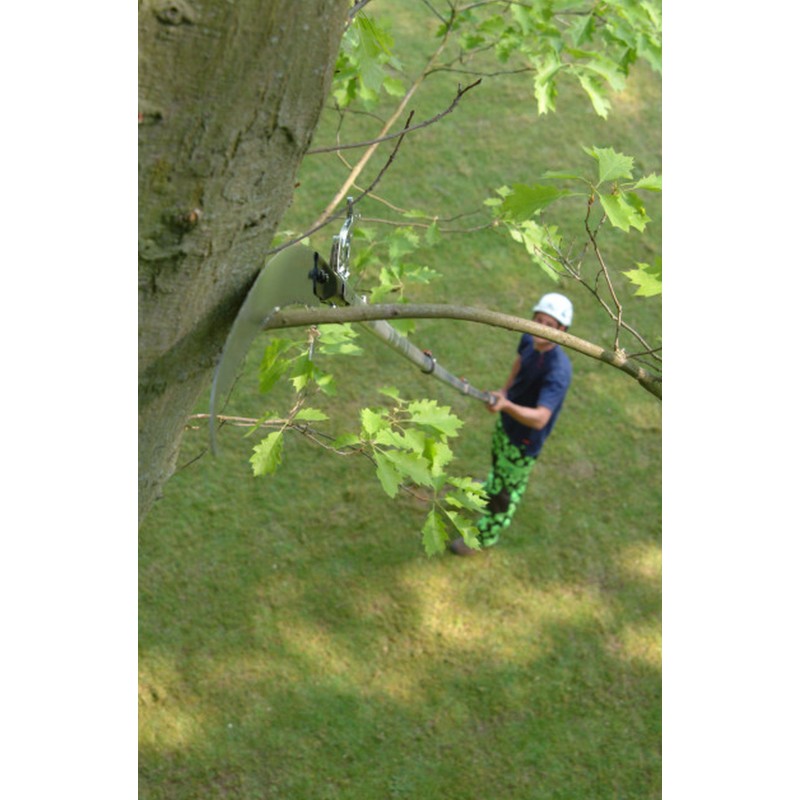 - HookFox zur Montage unter dem Sägeblatt. Damit können Sie abgesägte Äste einfach nach unten ziehen oder Kletterseile in den Baum bringen.