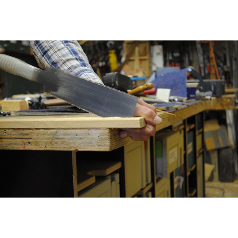 Silky Hibiki Ryoba ist eine Säge für den feinen Holzschnitt, wie er beispielsweise bei Tischlerarbeiten erforderlich ist. Das Blatt hat ein praktisches Format von 21 cm und verfügt über beidseitige Verzahnung. Mit der einen Verzahnung kann Holz klassisch durchsägt werden, während die andere speziell zum Auskehlen geeignet ist.