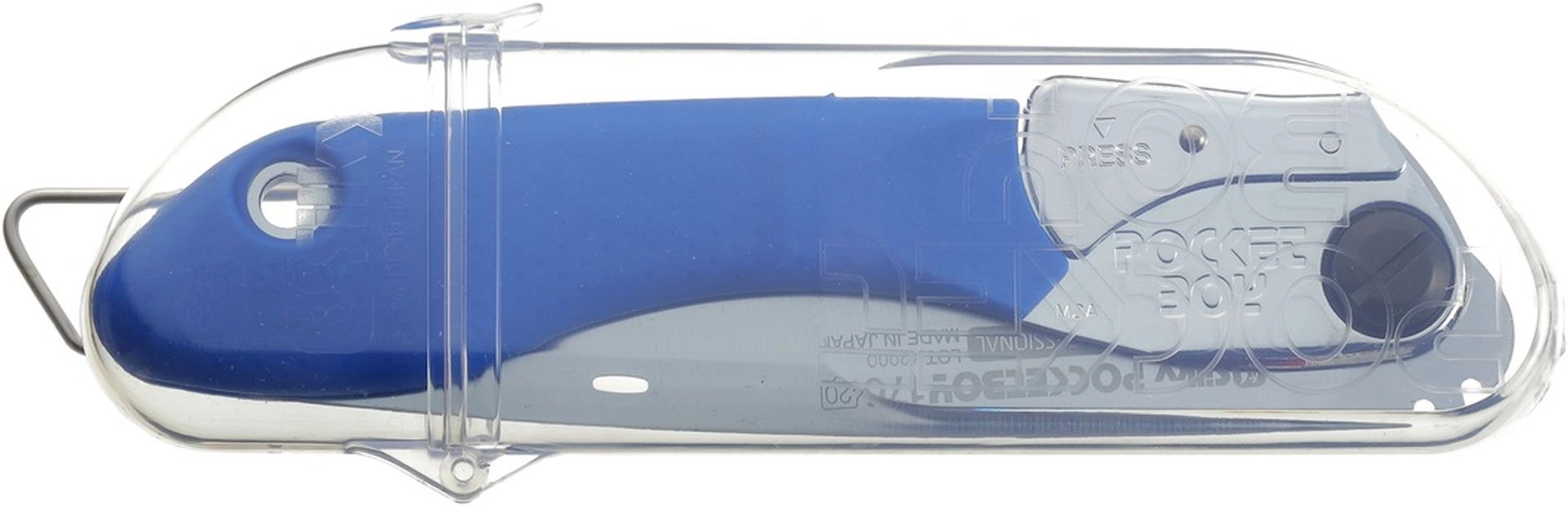 Sie können die Pocketboy am Gürtel im serienmäßig mitgelieferten durchsichtigen Kunststoffbehälter tragen oder eine geeignete Hülle verwenden. Diese Klappsäge kann auch praktisch im Werkzeugkasten aufbewahrt werden.