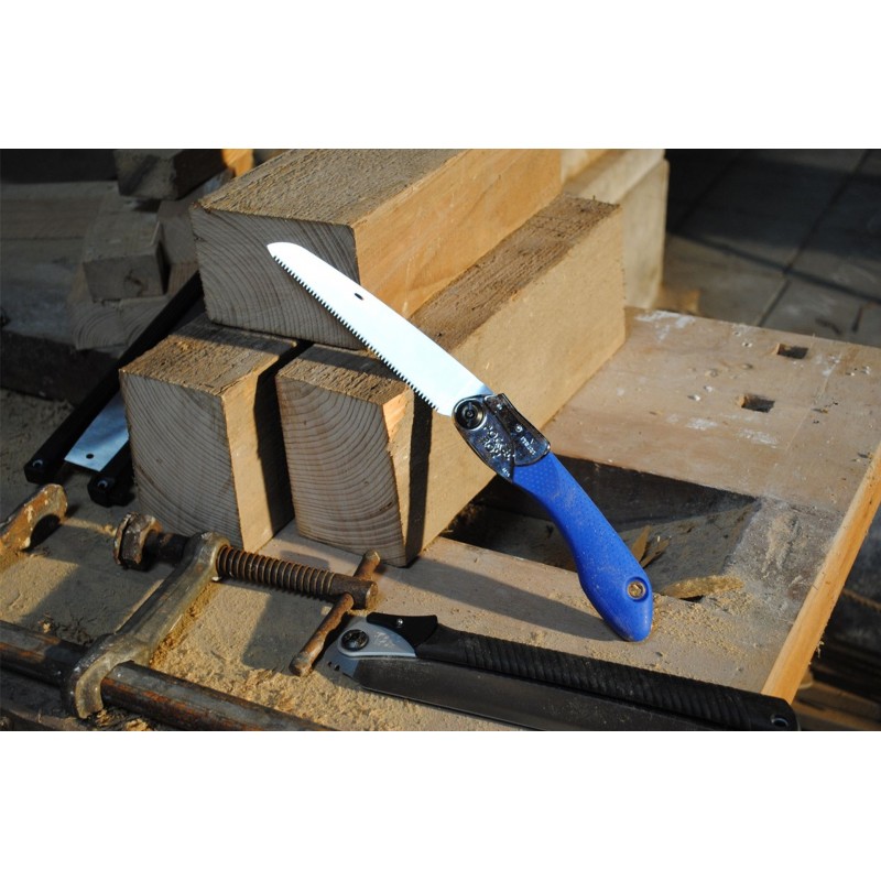 Das Sägeblatt muss immer sauber gehalten werden, da sonst die Sägewirkung verloren geht. Harz löst sich in Olivenöl auf – eine effektive und umweltfreundliche Methode zur Reinigung. Aggressive Mittel können den Gummigriff beschädigen.