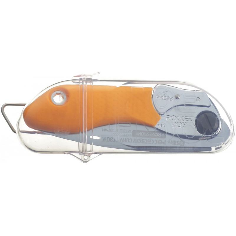 Sie können die Pocketboy am Gürtel im serienmäßig mitgelieferten durchsichtigen Kunststoffbehälter tragen oder eine geeignete Hülle verwenden. Diese Klappsäge kann auch praktisch im Werkzeugkasten aufbewahrt werden.