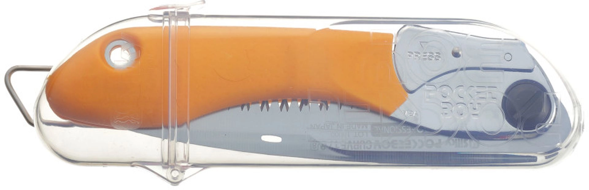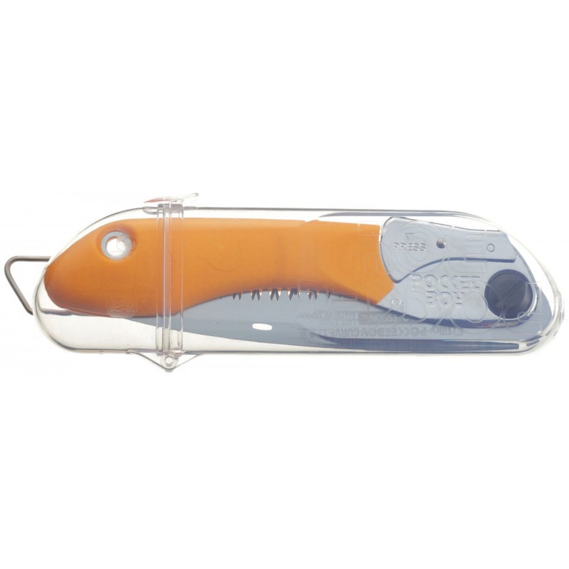 Sie können die Pocketboy am Gürtel im serienmäßig mitgelieferten durchsichtigen Kunststoffbehälter tragen oder eine geeignete Hülle verwenden. Diese Klappsäge kann auch praktisch im Werkzeugkasten aufbewahrt werden.